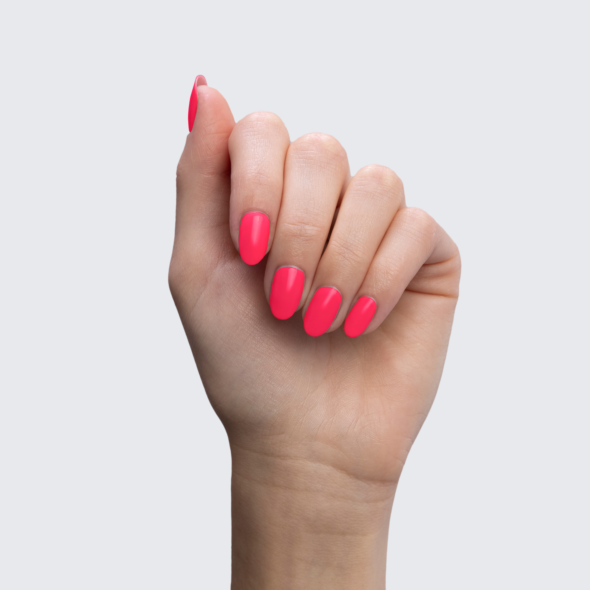 Neon pink. Bright. Cool undertone. Medium opacity.